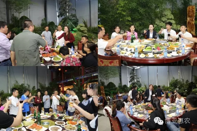 傍晚時分,兄弟公司聚餐聯誼會在一片歡聲笑語中拉開帷幕。公司生態宴會大廳內綠意盎然,流光溢彩,一桌桌豐盛的綠色菜肴散發著博亞惠農人的熱情與豪爽。